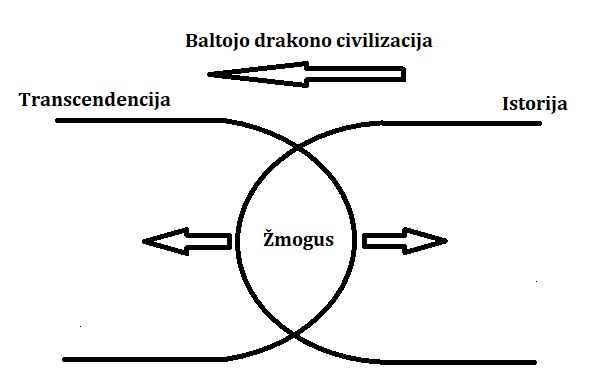Matome, kad žmogus, esantis centre, yra sankirta tarp dviejų realybių: anapusinio ir šio pasaulio, transcendencijos ir istorijos. Tai reiškia, kad įmanomos trys orientacijos: stovėjimas centre ir nedalyvavimas nei begalybės misterijoje, nei istorijos procese; orientacija į transcendenciją, dalyvaujant kokioje nors religijoje ar metafizinėje filosofijoje; ir orientacija į šį pasaulį, į istoriją, kuri yra begalybė ištęsiama laike. Baltojo drakono projektas yra transcendencijos ir istorijos susiliejimo procesas, per vis gilesnį mokslinį hipostratų atidenginėjimą, kuris leidžia kurti vis galingesnes hipostratines technologijas, įvedant jas į žmogaus pasaulį, propaguojant transhumanistinę žmogaus sampratą ir politinę santvarką, siekiant posthumanistinės būklės, sukūrus dirbtinę gyvybę ir mašinai įveikus žmogaus viešpatavimą. Tokia planetinės civilizacijos loginė struktūra, į kurią siekia įšokti ir Lietuvos elitas, tikėdamasis, kad valstybė bus gausiai apdovanojama investicijomis, plėsis ekonomika ir jie iškops pakankamai aukštai turtinėje hierarchijoje naujoje mokslo ir transhumanizmo eroje. Kartu su elitu, tikimasi, augs ir visuomenės materialinė gerovė, tačiau ta gerovė bus nustelbiama vergovinių santykių, neturėjimo alternatyvos ir pasirinkimo laisvės. O tai pirmiausiai gresia filosofijos ir religijos nunykimu, demokratijos pasibaigimu ir žmogaus teisių bei laisvių erozija. Dėl šios priežasties projektas turi būti permąstomas ir ieškoma kelių lietuvių tautai, kurie nebūtų tokie katastrofiniai. Tai svarbu todėl, kad kokią istoriją susikursime, tokią ir turėsime ilgus tūkstantmečius, nes alternatyvų mokslui ir transhumanizmui nebus ilgai.