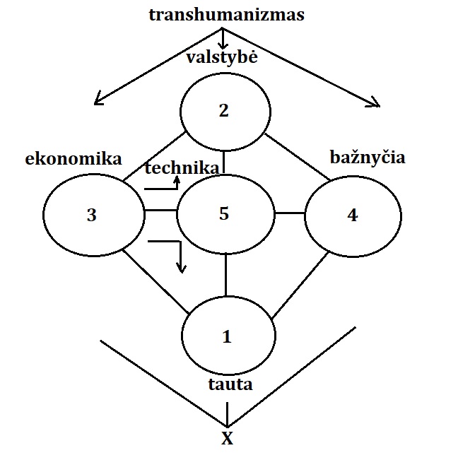 4) bažnyčia – ateistinis satanizmas, mokslas;