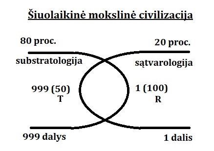 Kitas principas yra visos, holoplastinės informacijos dalinimas į 1000 dalių, kurios yra informacijos vertinimo vienetai, didžiajai sievai maišantis su mažąja sieva. Pagal bazinį vertinimą, pradinis pasidalinimas informacijos vienetais yra 1 dalis sąmonei ir 999 hipostratai. Tai reiškia, kad pažindami tik sąmonės fenomenologiją, psichologiją, kalbą, tiriame 1/1000 informacijos ir civilizacija, pastatyta tokios informacijos pagrindu, yra kultūrinė civilizacija, galinti naudoti tik primityvias technologijas, kurioms nereikia atverti ir įvaldyti hipostratos. Tai juodojo drakono civilizacija, kurios pagrindas yra psichologija ir logika, kurios neatveria anapusinės tikrovės ir neturi natūralios tvarkos sutrikdymo priemonių. Kai ši situacija pradeda apsivertinėti, transcendencijos taškai perkeliami į sumatorių, ir formuojasi drakono akis, sudaryta iš laksatinio ekrano ir rišlio. Baltasis drakonas yra žmogus, pasiekęs maksimalų sievų apvertimą, kuris leidžia pradėti kurti dirbtinę tikrovę ir surasti joje daug civilizacijos veiklos masto išplėtimui reikalingų galimybių. Vertinant dabartinę mokslo padėtį, turime 20 proc. atvertos hipostratos 10 proc. pažinimą, kuris sudaro 100 taškų, perkeltų iš 999 vienetų hipostratoje. Todėl gauname tokią mažosios sievos konfigūraciją: 1 (100), kur vienetas yra psichologinė bazė, o šimtas – matomos ir nematomos tikrovės mokslinis modelis. Šis modelis apima materialią realybės dalį, minus sąmonė, kurios svarbiausios yra mechanika, chemija, termodinamika ir elektrodinamika. Šios mokslo disciplinos šiuo metu pasidalinusios į du variantus: klasikinį ir reliatyvistinį. Ir priešingoje pusėje prie 999 matome dirbtinės tikrovės, arba technikos, vienetus, kurie rodo, kad iš 100 teorijos vienetų, apie pusę, 50 vienetų, sugebama paversti technika, gaunant 999 (50). Toks principas rodo, kad pažinimo ir žinojimo plėtra neribota, tačiau dirbtinio pasaulio plėtimas stabdomas dėl poveikio gyvybei hipostratoje, nes visi esame viename materijos katile, kuriame sukėlus anomaliją, poveikis perduodamas ir sukėlėjui, ir visai aplinkai neapsaugotu būdu. Dėl to technikos plėtrą reikia riboti, nekuriant hipostratoje gyvybei pavojingų anomalijų. Koks techninės taršos saugus mastas, turės nuspręsti ateities mokslininkai.