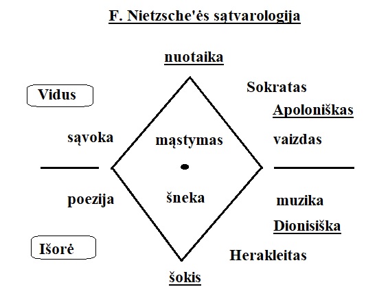 Norint dar geriau įsigilinti į F. Nietzsche‘ės sątvarologiją, patogu naudoti schemą, kurioje naudojamas rombas, kuris iš tikro yra redukuotas didžiosios ir mažosios sievos sandūros variantas. Jis panašus į masonų žinomą simbolį, bet sutapimas tik atsitiktinis, nes šią struktūrą naudoju tik dėl patogumo, o ne kaip nuorodą į masonų doktriną. Schema pateikta toliau: