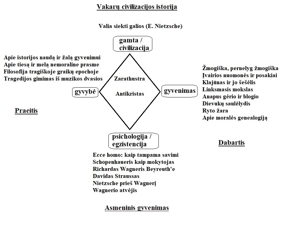 Siūlau dar vieną F. Nietzsche’ės kūrybos skaitymo sistemą, kuri panaši į ankstesnę, tačiau šiek tiek pertvarkyta, patobulinant jos logiką. F. Nietzsche’ės filosofija svarbi skaitant “Filognozijos pradmenų“ 10 tomą, kuriame ji parodoma iš dabarties perspektyvos, tai yra praėjus 122 metams po filosofo mirties.