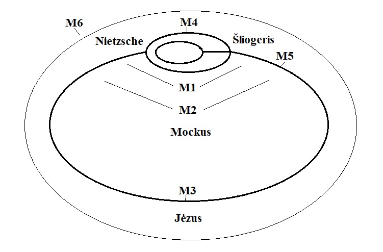 Tą patį galima pasakyti ir apie keturis išsirinktus filosofus arba religijos pradininkus, įskaitant ir mane, kurių padėtis ant Uroboro schemos rodo filosofijos / religijos pagrindinę kryptį. Filosofai yra du paviršininkai – Nietzsche ir Šliogeris, kurie daugiausiai yra empiristai, akcentavę nusisukimą nuo metafizinės transcendencijos arba net rodę jai atvirą priešiškumą; taip pat rodoma mano padėtis, kuri yra gelmininko, arba metafiziko, tačiau ne tradiciniu stiliumi, bet jau minėtu filognozijos, holoplastiniu. Tai nusisukimas nuo pasaulio ir psichologijos į artimąją transcendenciją, kurio tikslas – suobjektyvinti filosofijos / filognozijos orientaciją, suformuluoti gelmės doktriną, kurios priemonėmis būtų galima plėsti civilizacijos mastą, padarant ją transglobaline. Ir paskutinis asmuo yra Jėzus iš Nazareto, davęs pradžią krikščionybei Vakarų civilizacijoje, prasidėjusiai nuo gnostikų kultūrinio / religinio judėjimo, dar susijusio su ankstesniais religiniais formatais, kuriuose siekiama ne pažinimo, bet garbinimo, maksimaliai atsiribojant nuo materialistinio, šiapusinio pasaulio, siekiant sudvasinti savo gyvūninį pradą, užsitarnauti amžiną gyvenimą. Ši sistema suformuluota taip, kad parodytų visas pagrindines galimas civilizacijų kryptis, remiantis žinomiausiais pavyzdžiais, kurie iki šiol yra aktualūs ir susiję su lietuvių tautos istorine perspektyva. Galima manyti, kad šiuolaikinė mokslinė civilizacija nustelbusi visas kitas ir kad tik ji turi formuoti Lietuvos ateitį, tačiau visi žinome, kad sumaterialėjusi ir amoralizuota tauta nesugebės pasiekti aukšto lygio, jeigu neįsisavins viso istorinio žmonijos paveldo, suradusi visose perspektyvose savo unikalų kelią ir likimą. Jeigu turėsime tik skeptinį scientizmą, sekuliarizmą ir pozityvizmą, bus tikro dvasinių orientyrų praradimo problema, kuri neleis pasiekti metafizinių aukštumų ir įrodyti savo tautos istorinį genialumą. Kaip jau buvo galima suprasti, aš Lietuvai siūlau atsisukti į transcendenciją, susikurti etinį santykį su transcendentine anapusybę ir kurti lietuvišką holoplastinį realybės supratimo variantą, kurį reprezentuoja mano pristatoma filognozija. Tai filosofija ir mokslas viename, bet ir kažkas daugiau – dėl savo visuotinės orientacijos, sujungiančios viską, kas geriausia visose pasaulio tyrimo kryptyse.